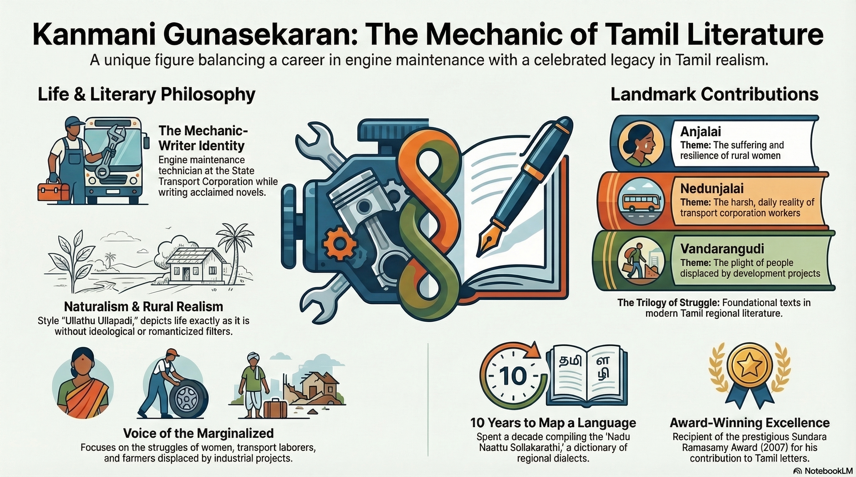 கண்மணி குணசேகரனின் வந்தாரங்குடி நாவல், நெய்வேலி நிலக்கரிச் சுரங்க (NLC) விரிவாக்கத்திற்காகத் தங்கள் நிலங்களை இழந்த வேப்பங்குப்பம் கிராம மக்களின் வாழ்வியலையும், அவர்கள் எதிர்கொண்ட இடப்பெயர்வுத் துயரங்களையும் மிக விரிவாகப் பேசுகிறது.