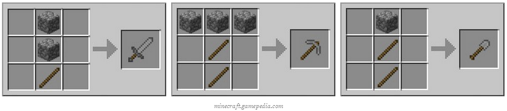 வெட்டிய சதுக்கங்களையும் மரக்குச்சிகளையும் கொண்டு விதவிதமாக கருவிகளை உருவாக்குவதில்தான் மைன்கிராப்ட் விளையாட்டின் சூட்சுமம் இருக்கிறது. உங்களுக்குத் தரப்பட்ட 3×3 தளத்தில், நீங்கள் சேமித்த பொருள்களை கலந்து கட்டி, புதுமையான ஆயுதங்களை வடிவமைக்க வேண்டும். சமையற்குறிப்புகள் மாதிரி இந்த இரகசியங்களை சொல்லிக் கொடுக்கவே சில வலையகங்கள் இருக்கின்றன. அவையும் கை கொடுக்கும்.
