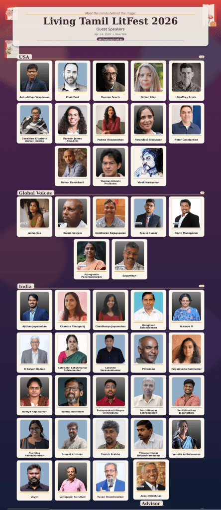 இப்போது இதுவே நடக்கிறது, தமிழ் மற்றும் இந்திய புலம்பெயர்ந்த சமூகம் — படித்தவர்கள், பன்மொழியாளர்கள், வாரத்திற்கொரு கோளமாகக் கண்டங்களைத் தாண்டி நிற்பவர்கள், தங்கள் மனசில் ஒரே நேரத்தில் இரண்டு மூன்று இலக்கிய மரபுகளைச் சுமந்தவர்கள் — இதில் பங்கெடுக்க மிகவும் ஆயத்தமாகி வருகிறார்கள்.