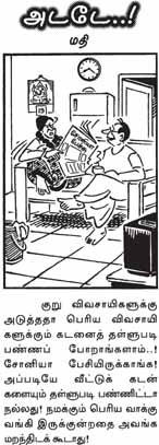 ஐந்தாண்டுகள் முன்பு வட்டி விகிதம் சல்லிசாக இருந்தது. வட்டியில்லாமல் கடன் கூட கொடுக்கப்பட்டது. இதை சாக்காக வைத்துக் கொண்டு அளவுக்கு மீறி செலவுகள் செய்து குடும்பம் கட்டியவர்கள் ஏராளம். வரவு நாலணா. வீட்டு வாடகை இரண்டணா; வட்டி போடாத கடனில் வீடு வாங்கினாலோ மாதந்தோறும் இரண்டணா மட்டும் அசலுக்கு தாரை வார்த்தால் போதும். அப்போது சரியாகத்தான் பட்டது. சில ஆண்டுகள் கழித்து, வட்டி விகிதம் ஏறி, மாதந்தோறும் எட்டணா கேட்க ஆரம்பித்தவுடன் துந்தனா…