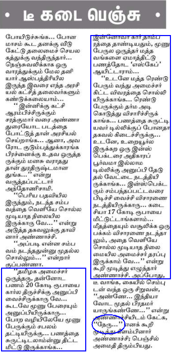 இது தேர்தல் காலம். தர்மபுரி இளவரசன் இறந்தால், தொல் திருமாவளவன் தலைவராகிறார். விடுதலை சிறுத்தைகள் கட்சியின் தொண்டர் தீக்குளித்தால், இரவிக்குமாருக்கு தொகுதி கிடைக்கிறது. அந்த மாதிரி மந்திரி ஒருவரின் வாழ்க்கையை இந்தப் புனைவு சித்தரிக்கிறது.