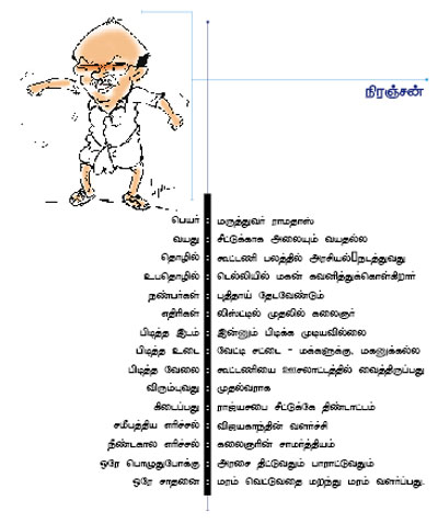 ஒரு வார்த்தை எங்காவது தவறான பொருளில் வந்தால் குடிமுழுகிப் போனதாகவேக் கருதுகிறார். “கொஞ்சம் தாமதமாக தவணையை செலுத்தினார் என்பது நேர்மையின்மையைக் குறிக்காதே?” என ஒரு கட்டுரையாளருக்கு வினா எழுப்புகிறார். “அதற்கு வறுமை என்று பெயர் என்றே நினைக்கிறேன்” எனக் குறிப்பிடுகிறார்.