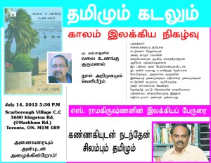 அதிசயமான உண்மை; ஒரு வடதுருவ மூலையில், மழை வலுத்த ஒரு ஞாயிறு மதியத்தில் ஒரு தீவிர எழுத்தாளர்/விமர்சகருடன் மதிய உணவு அருந்தவும், தொடர்ந்து அவரது உரையைக் கேட்டு விவாதிக்கவும் பதினைந்து கனேடிய டாலர்கள் கட்டணத்தில் அறுபது பேர்கள். – வாழும் தமிழென்னும் நம்பிக்கை என்னுள் இலையுதிர் காலத்தில் துளிர்க்கிறது.