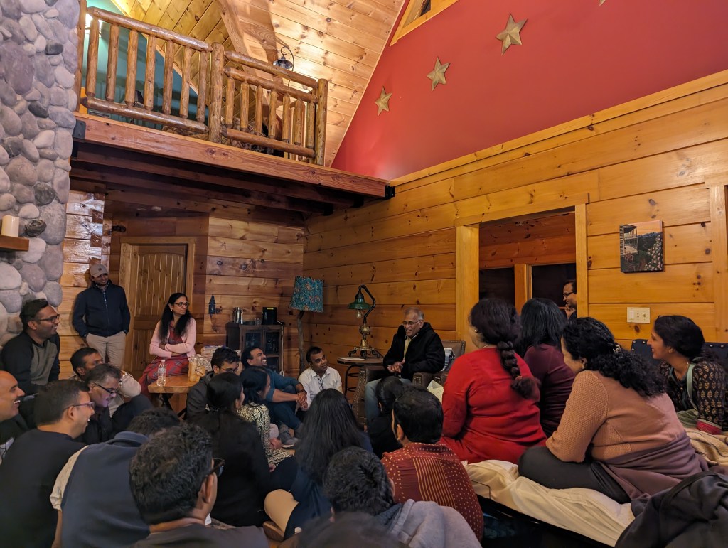 அதன் பின்னர் நாங்களே எங்கள் அனைவரையும் மஹேஸ் பழனிஜோதி இல்லத்திற்கு அழைத்துக் கொண்டோம். கிட்டத்தட்ட அங்கேயும் ஒரு 30 /40 பேர் குழுமியிருப்போம். சபை களை கட்டியது. சூடான பருப்பு வடை அல்லது அதற்குப் பேர் மெதுவடையா . கரக்… மொறுக் உள்ளே தள்ளினோம். தேநீர். ஆளுக்கு முருக்கு பாக்கெட் வேறு.
